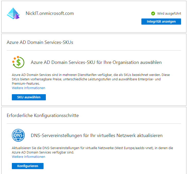 Erscheint „Wird ausgeführt“ ist die Domäne erfolgreich erstellt.