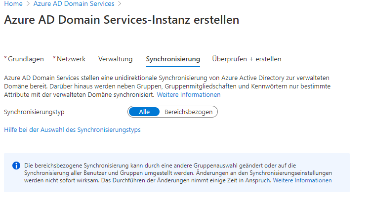 Synchronisierungseinstellungen haben für das Lab keine Auswirkungen und können so beibehalten werden.