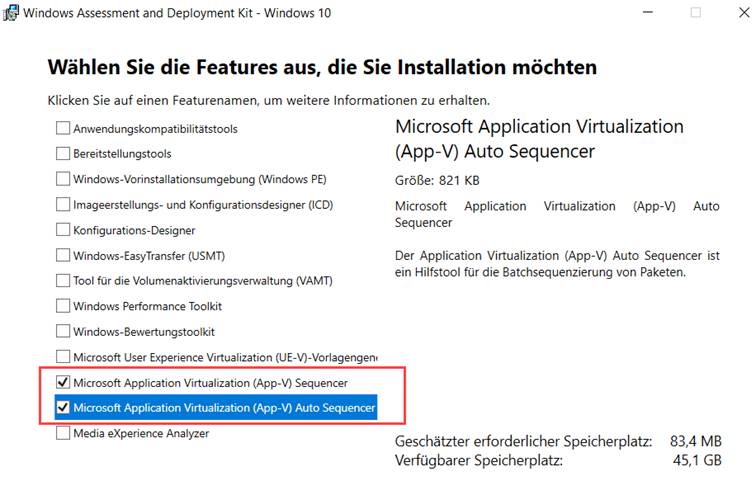 Weiterhin ist in dem ADK zu 1703 ein neuer App-V Sequencer verfügbar. Dazu ist inzwischen auch eine neue Version des ADK (Windows Assessment and Deployment Kit). Die Serverkomponenten, wie der App-V Veröffentlichungsserver müssen, wenn diese überhaupt eingesetzt werden sollen, noch immer über das MDOP heruntergeladen werden (Microsoft Desktop Optimization Pack).